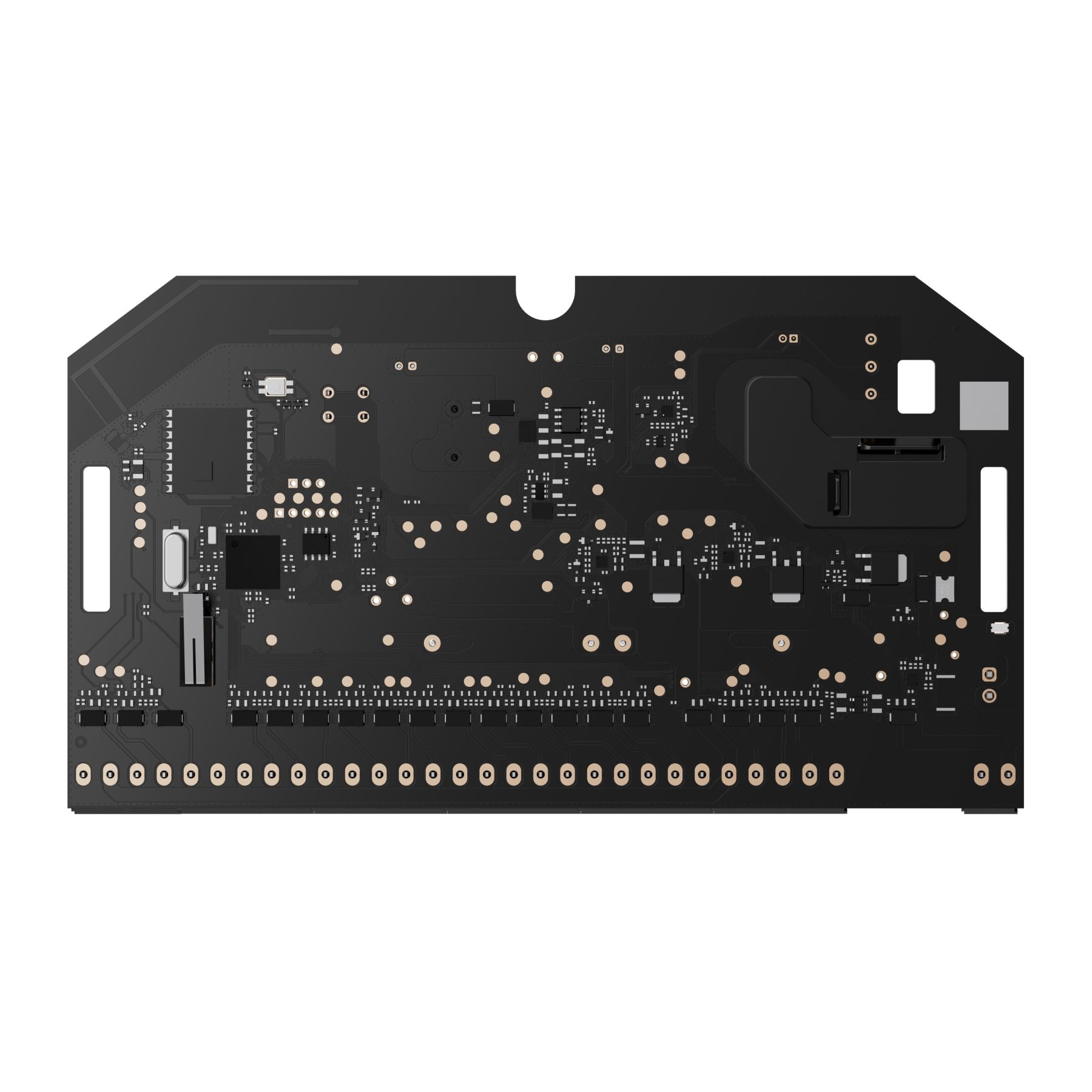Плата живиться від мережі 100–240 В~ і підтримує резервну батарею 12 В (до 1 А сумарно для дротових пристроїв + окрема лінія 0,4 А для пожежних датчиків). Має роз’єм для тамперної плати корпусу Case та дві кнопки тампера (на передній і задній панелі), які в поточній версії поки не використовуються. Модуль працює через захищені протоколи Superior Jeweller (EN 50131 Grade 3 з радіочастотним гопінгом і посиленим шифруванням) та Wings (для оновлень прошивки).