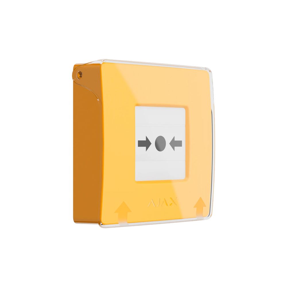 ManualCallPoint (Yellow) Jeweller – бездротова програмована кнопка для активації тривоги або сценаріїв автоматизації. На відміну від червоної версії, не налаштована за замовчуванням як «Кнопка пожежної тривоги» і потребує ручного налаштування. Використовує захищений радіопротокол Jeweller із дальністю зв'язку до 1700 м. Оснащена поновлюваним гнучким елементом і механізмом скидання за допомогою спеціального ключа. Підтримує кілька режимів роботи, включно з тривожною кнопкою, сигналізацією витоку газу та активатором сценаріїв. Світлодіодна індикація відображає стан тривоги і несправності. Передбачено захист від випадкових натискань із можливістю встановлення прозорої кришки. Працює від двох батарей CR123A з автономністю до 7 років. Пристрій призначений для встановлення всередині приміщень, оптимальна висота монтажу – 1,4 м.