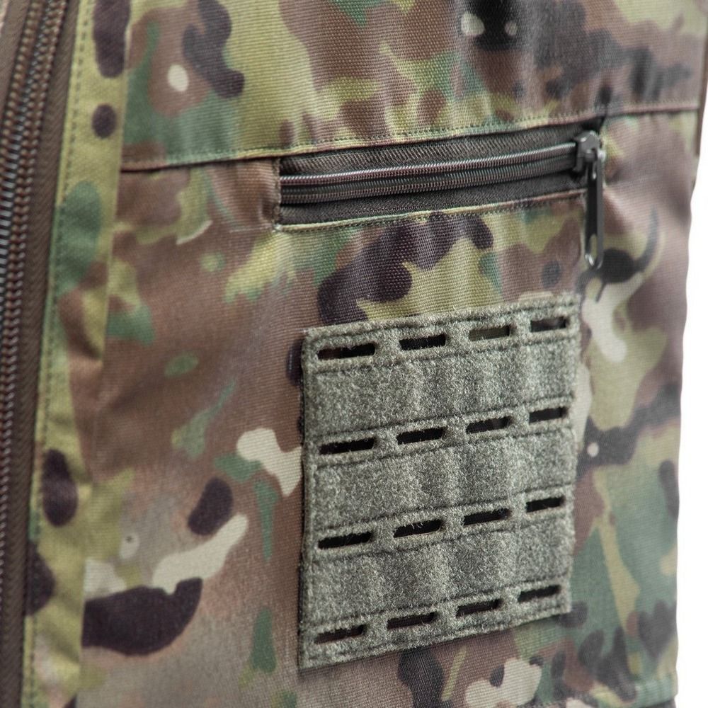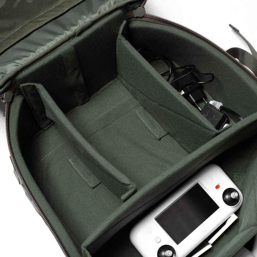 Захисний рюкзак з армуванням та амортизацією для перенесення та зберігання дронів. З дощовиком. Матеріал: кордура 1000 з IRR просоченням. Зовнішні розміри: 63×37×19 см. Внутрішні розміри: 60×34×16 см. Об'єм: 30 л. Вага: 1,8 кг. Колір: мультикам.