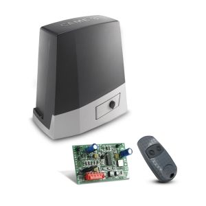 Комплект автоматики для відкатних воріт шириною до 20 м і вагою до 1500 кг. До комплекту входять: привод інтенсивного використання з магнітними кінцевиками з панеллю керування – 1 шт., радіоприймач одноканальний 433 МГц – 1 шт., пульт ДК двоканальний – 1 шт. Штовхаюче зусилля 800Н, швидкість відчинення на 12м/хв, потужність 200Вт, напруга живлення 230В, живлення приводу 36В