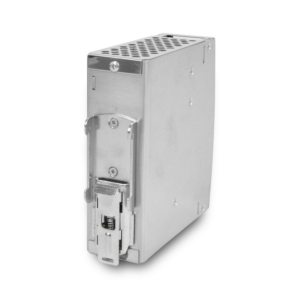 Блок живлення імпульсний, для кріплення на DIN рейку. Потужність 120 Вт. Вихід: 24 В / 5 А, клема. Вхід: AC 100–240 В, клема. Матеріал: метал. Робоча температура: від -20 до +70°C. Розміри: 40 × 125 × 113 мм. Вага: 600 г.