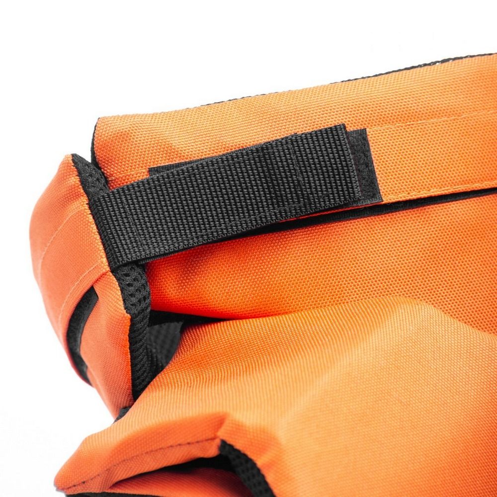 Дитячий захисний протиуламковий жилет. 2 клас захисту. Матеріал жилету: Oxford 600. Захисний шар: надвисокомолекулярний поліетилен (НВМПЕ). Товщина захисного елемента 9 мм. Колір помаранчевий. Місце захисту: плечі, спина, груди, живіт, боки. Площа захисту: 38 дм2. Розмір: М-L. Вага: 2.9 кг.