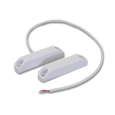 Магнітоконтактний датчик відкриття (геркон). Накладний тип встановлення. Робоча відстань до 40мм. Пластиковий корпус білого кольору. Не вимагає подачі живлення. Розміри 64х13х13мм.