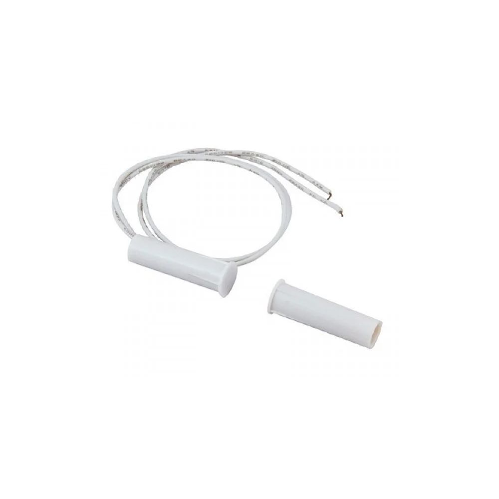Датчик відкриття магнітогерконовий (геркон) на дерев'яні та пластикові поверхні, врізний тип встановлення, корпус пластиковий, черговий режим - 10мм, режим тривоги - 25мм. Колір: білий.