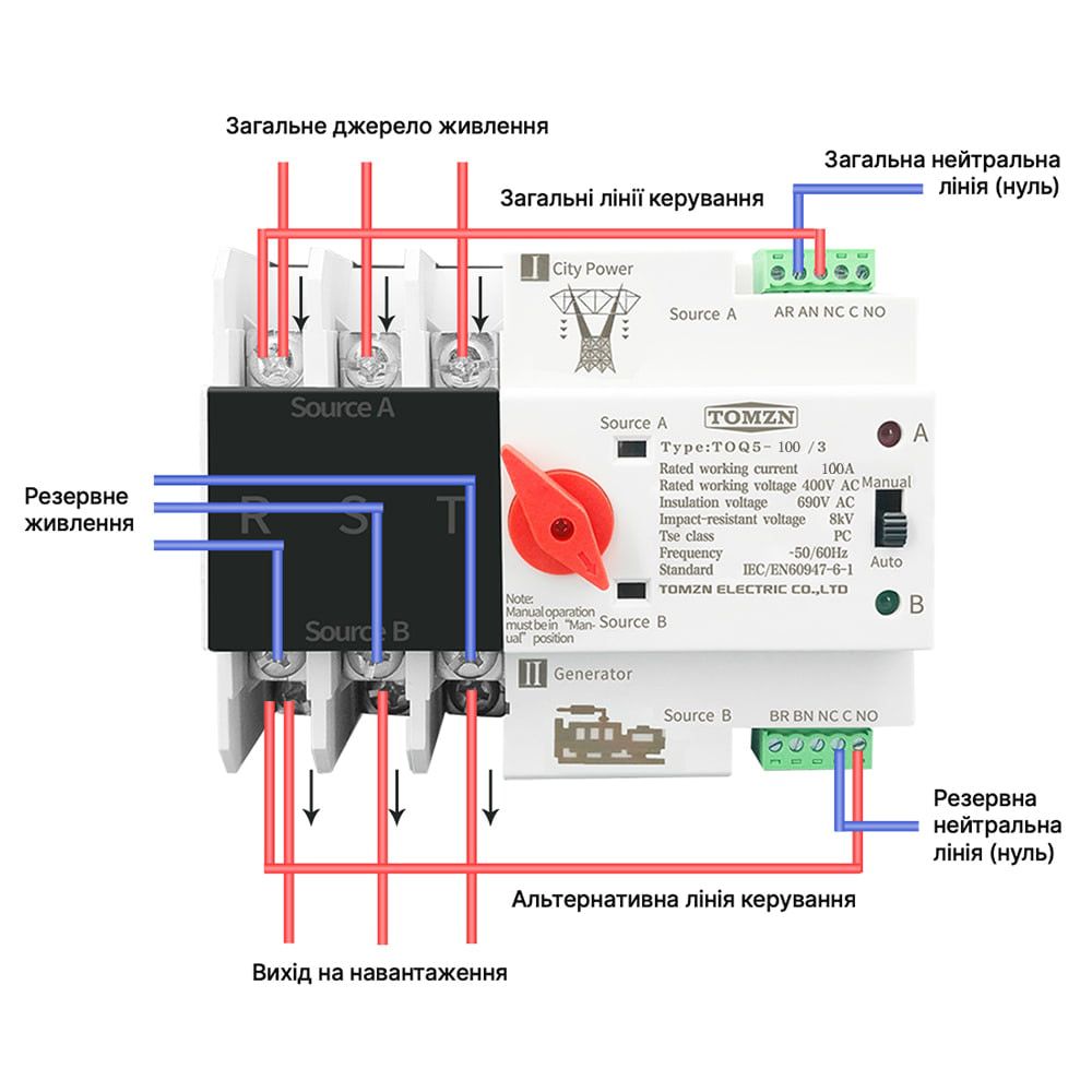 Автоматичний перемикач (АВР) під DIN-рейку TOMZN TOQ5/3P 100A 3 полюси