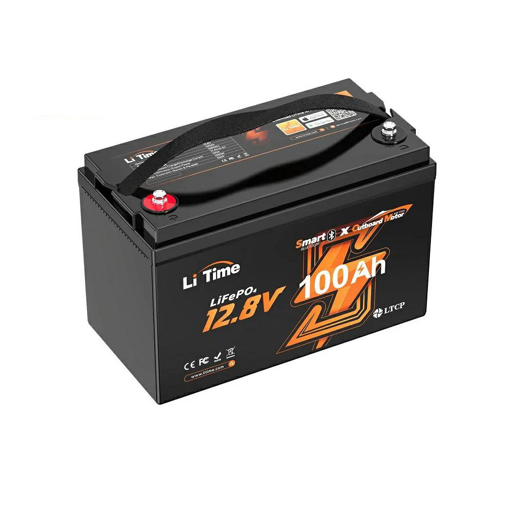 Акумуляторна батарея літій-залізо-фосфатна (LiFePO4) з Bluetooth; тягова; ємність 100 А·год (1280 Вт·год); напруга 12.8 В; макс. струм заряду 100 А / розряду 100 А; кількість циклів: >4000; підключення через Bluetooth до мобільного застосунку LiTime для моніторингу та керування параметрами акумуляторної батареї; тип клем M8; можливе послідовне підключення до 5 батарей та паралельне до 5 батарей; захист від заряджання за низьких температур; клас захисту IP65; розміри 330 / 172 / 216 мм; вага 10.25 кг