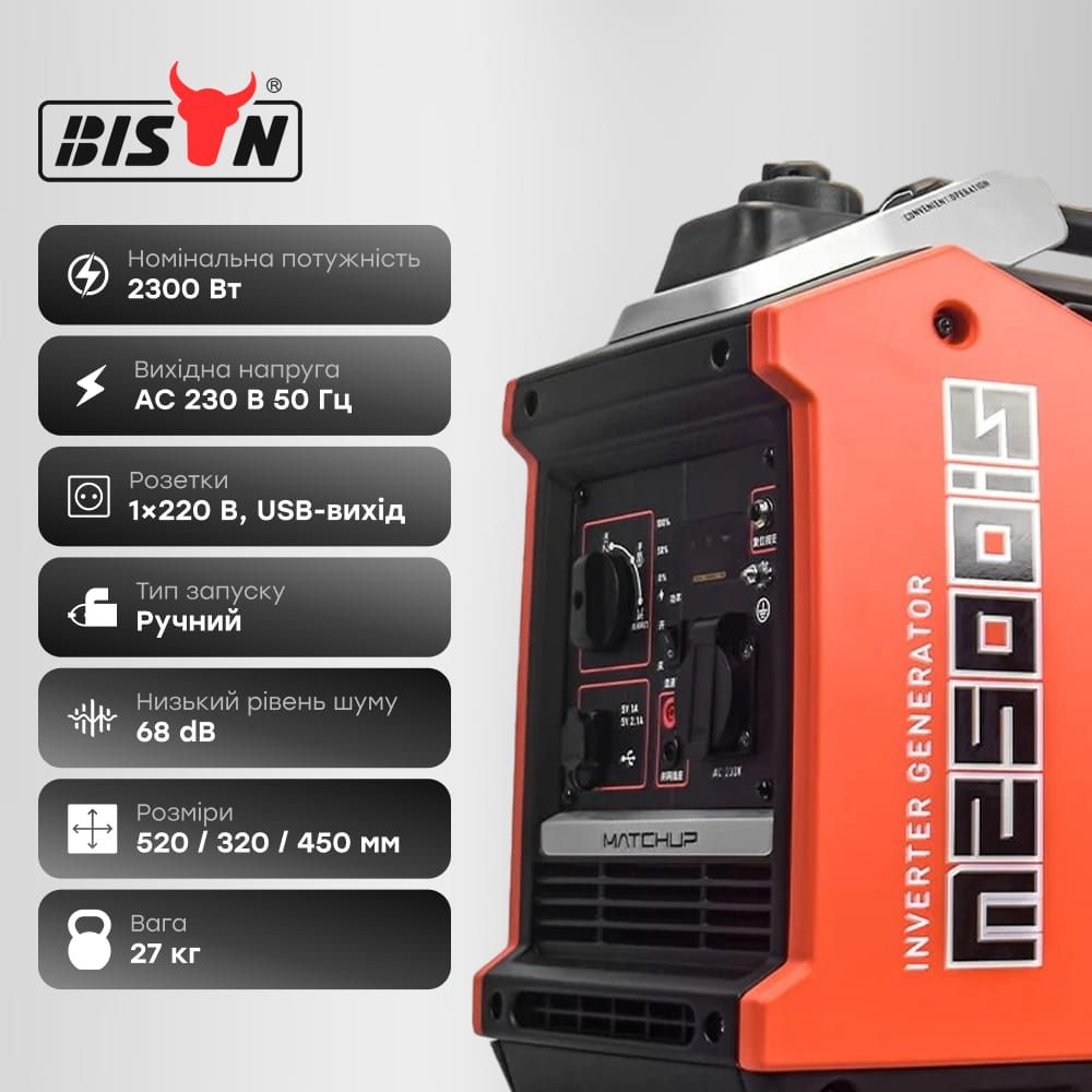 Генератор інверторний бензиновий 2.3 кВт Bison BS2500IS