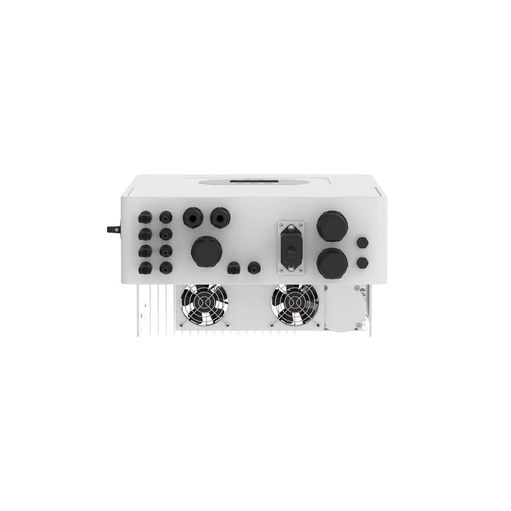 Гібридний трифазний високовольтний інвертор з номінальною потужністю 10 кВт, з 2 вбудованими MPPT-контролерами та вбудованим зарядним пристроєм; максимальна короткочасна потужність 15 кВт; напруга акумуляторної батареї 160-700 В; максимальний струм заряду/розряду 37 А/37 А; вихідна напруга 230/400 В, вихідна частота 50/60 Гц; вхідна напруга 170-280 В; ККД >97%; діапазон напруги від сонячних панелей 150-850 В, максимальна потужність сонячних панелей 13 кВт; підтримка заряду АКБ типу Li-ion; час перемикання на АКБ 8 мс; комунікаційні інтерфейси CAN, RS485, RS232; настінний монтаж; клас захисту IP65; температура середовища -40°C~+60°C; розміри 638 / 408 / 249 мм, вага 30.5 кг