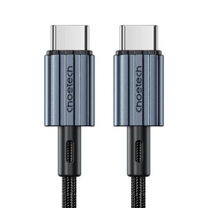 Кабель для заряджання та передачі даних з двома роз’ємами USB-C; максимальна потужність 60 Вт, вихід 20 В/3 А (макс.); швидкість передачі даних до 480 Мбіт/с, підтримка стандарту USB 2.0; матеріал: нейлонове обплетення + алюміній; довжина кабелю 2 м; вага 40 г