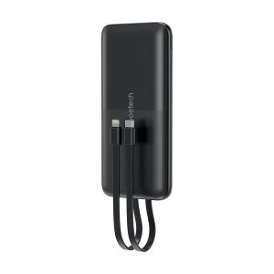 Повербанк з ємністю батареї 10000 мА·год, з вбудованими кабелями Type-C та Lightning; тип батареї: літій-полімерна (Li-pol); інтерфейси вхідні: Type-C: 5V/3A, 9V/2A, micro-USB: 5V/2A, 9V/2A, вихідні: USB-A/Type-C: 5V/4.5A, 4.5V/5A, 5V/3A,9V/2A,12V/1.5A (Type-C PD 22.5 Вт макс.), Type-C кабель: 5V/3A, 9V/2.2A, 12V/1.5A (18 Вт макс.), Lightning кабель: 5V/2A; протоколи швидкого заряджання QC/PD; LED-індикація заряду; розміри 148 / 68 / 17.2 мм; вага 242 г