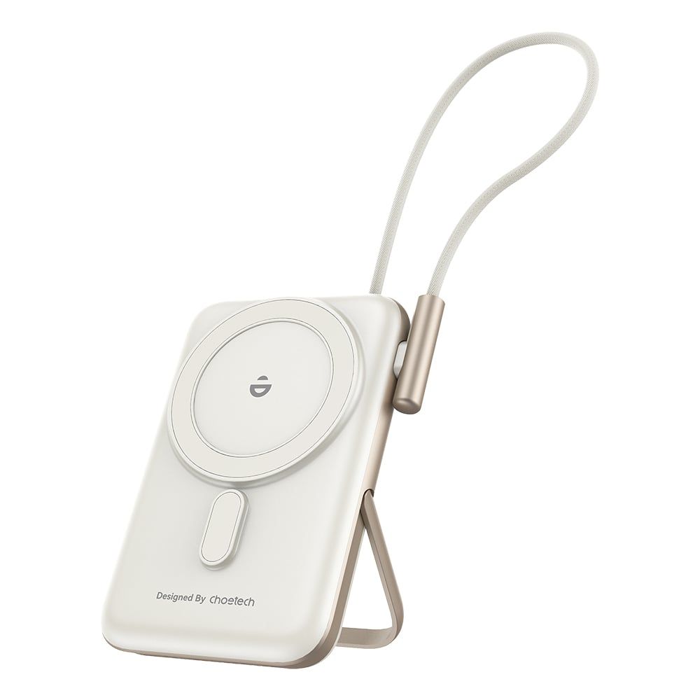 Повербанк 10000mAh Choetech B735 White QC3.0 PD3.0 бездротова магнітна зарядка, вбудований кабель, підставка