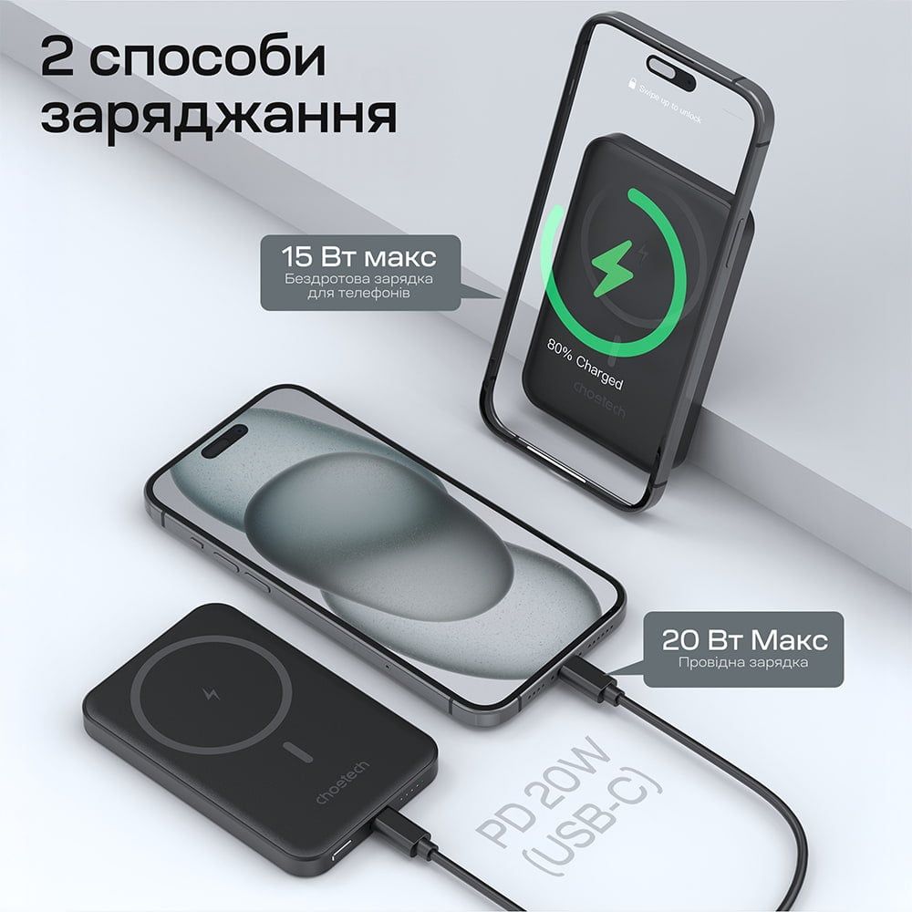 Повербанк 5000mAh Choetech B709 Black PD3.0 бездротова магнітна зарядка