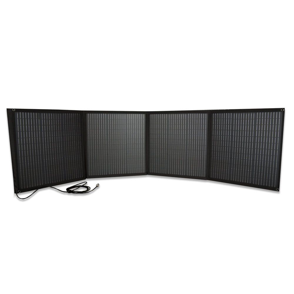 Монокристалічна розкладана сонячна панель для автономної роботи або в складі зарядних станцій Kraft; максимальна потужність панелі 200 Вт; напруга холостого ходу 24.2 В; струм короткого замикання 10.7 А; номінальна напруга 20.5 В; номінальний струм 9.7 А; вихідний роз’єм живлення GX20 4pin; розмір в розкладеному стані 2205 / 570 мм, транспортувальний розмір 570 / 546 мм