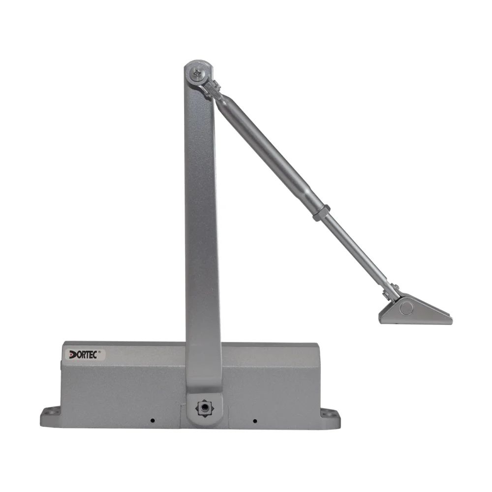 Дверний доводчик; конструкція тяги – складаний важіль; маса дверного полотна 45-85 кг; розміри 248 / 45 / 72 мм; колір срібний