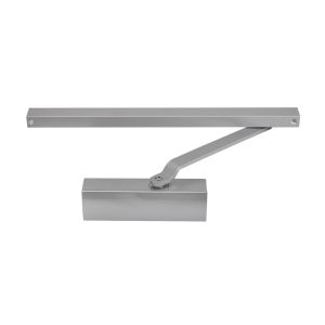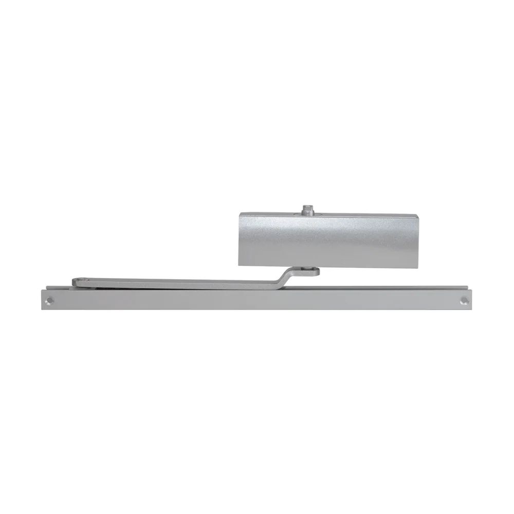 Дверний доводчик; конструкція тяги – ковзаючий канал; маса дверного полотна 25-60 кг; розміри 207 / 55 мм; колір срібний