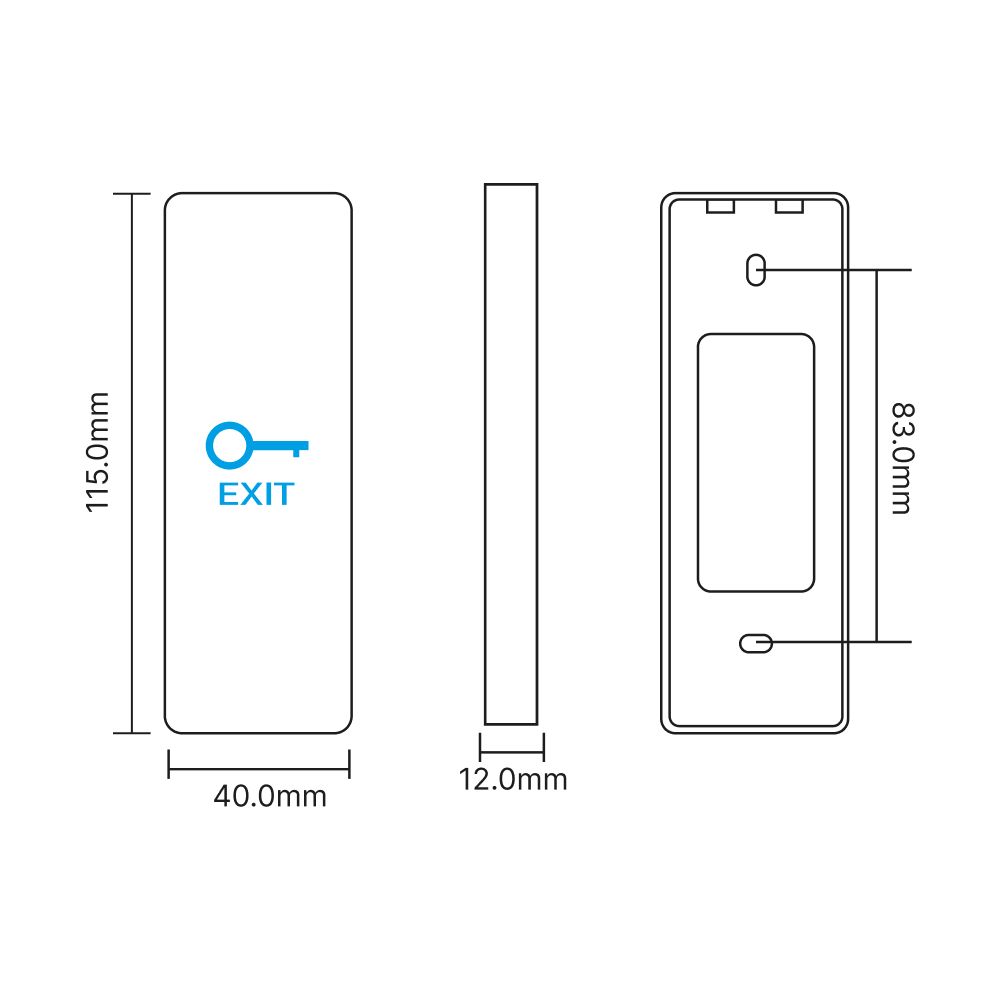 Кнопка виходу сенсорна; тип контакту НР, НЗ; живлення DC 12-24 В; двокольорова LED-індикація стану роботи; накладний тип монтажу; матеріал корпусу пластик; розміри 115 / 40 / 12 мм; колір білий