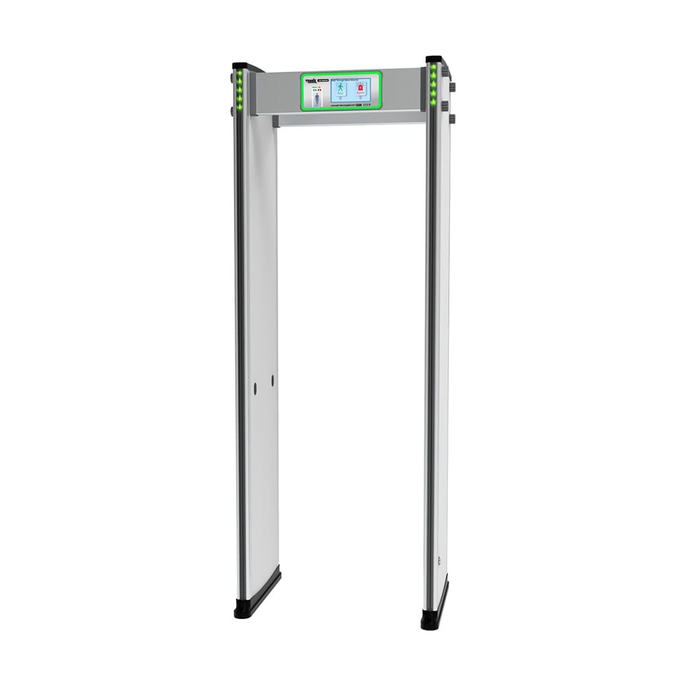 Арочний металодетектор для внутрішнього встановлення з 18 зонами детекції; 1000 рівнів чутливості; сенсорний 7-дюймовий LCD-екран; лічильник проходів і тривог; захист паролем зміни параметрів; світлодіодна і звукова індикація; живлення 100-240 В; потужність споживання 30 Вт; робоча температура -25°C~+55°C; зовнішні розміри 2225 / 1120 / 580 мм; розміри проходу 2025 / 1000 / 505 мм; вага брутто 57 кг