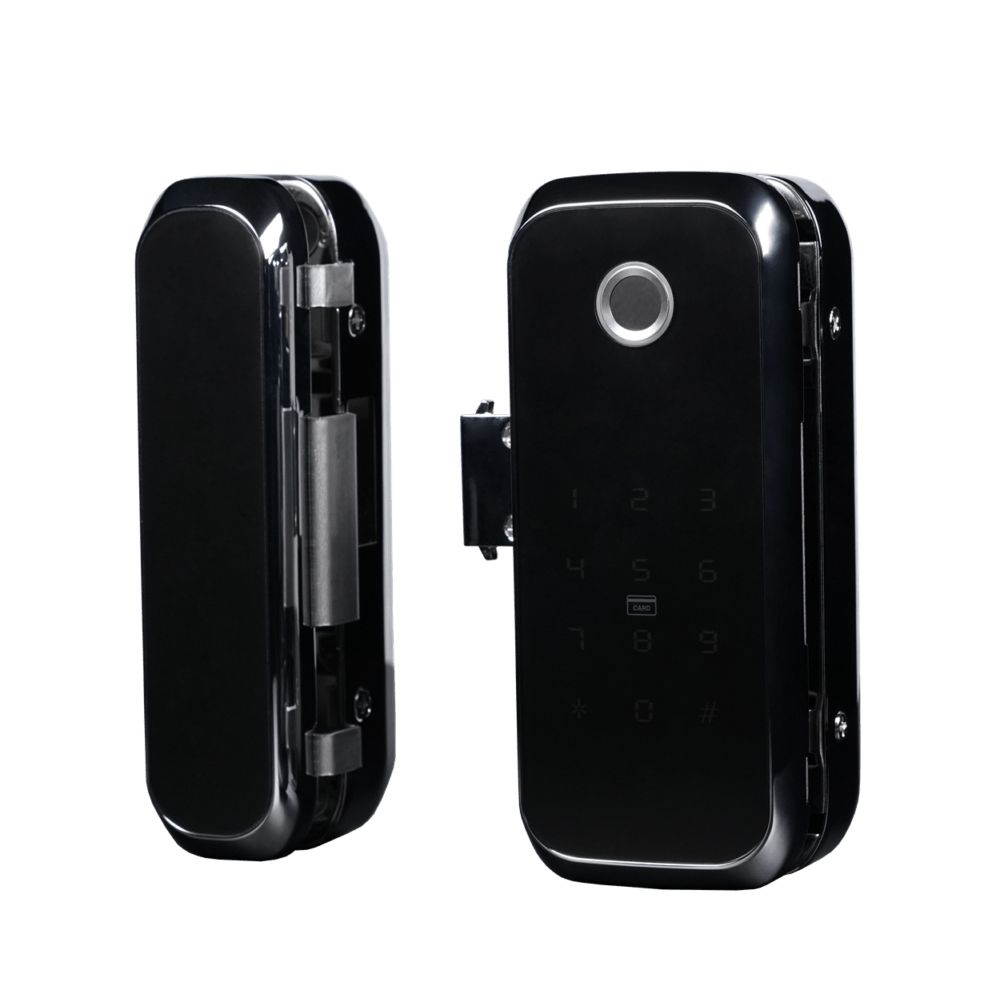 Замок біометричний автономний на скляні двері Trinix TRL-3306BTG з Bluetooth, зчитувачем відбитків пальців і карт Mifare