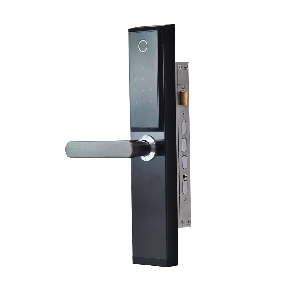 Біометричний автономний електрозамок з Bluetooth і зчитувачем відбитків пальців та карт Mifare 13.56 МГц; відімкнення за допомогою: відбитку пальця, коду, картки, застосунку, ключа; кількість користувачів за відбитком пальця / карткою / кодом: 120 / 200 / 150; роз'єм microUSB; застосунок для роботи TTLock, TTHotel; живлення 4*АА батарейки; тип, матеріал і товщина дверей: лівобічні, металеві/дерев'яні, 40-120 мм; врізний монтаж; матеріал корпусу нержавіюча сталь; розміри 350 / 78 / 24 мм