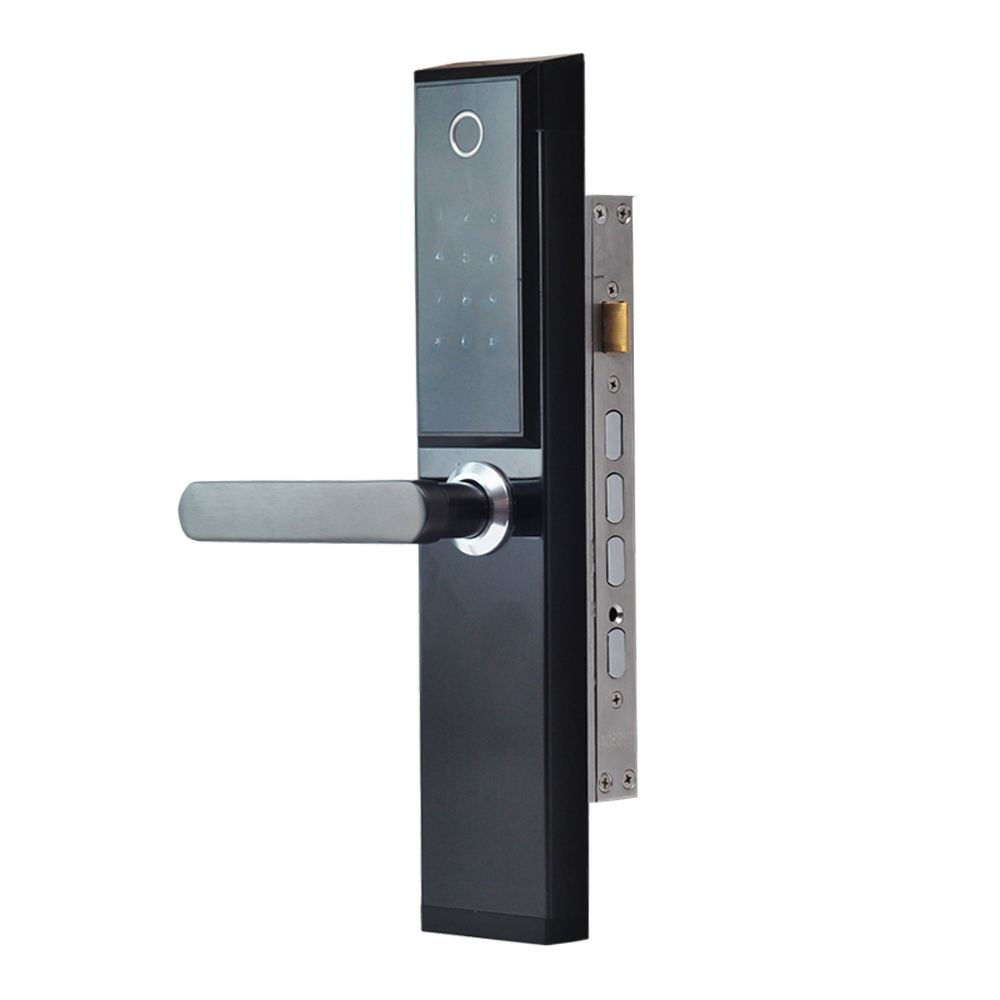 Біометричний автономний електрозамок з Bluetooth і зчитувачем відбитків пальців та карт Mifare 13.56 МГц; відімкнення за допомогою: відбитку пальця, коду, картки, застосунку, ключа; кількість користувачів за відбитком пальця / карткою / кодом: 120 / 200 / 150; роз'єм microUSB; застосунок для роботи TTLock, TTHotel; живлення 4*АА батарейки; тип, матеріал і товщина дверей: лівобічні, металеві/дерев'яні, 40-120 мм; врізний монтаж; матеріал корпусу нержавіюча сталь; розміри 350 / 78 / 24 мм