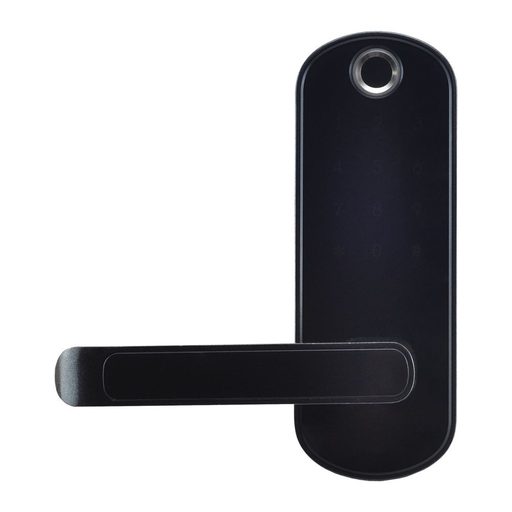 Біометричний автономний електрозамок з Bluetooth і зчитувачем відбитків пальців та карт Mifare 13.56 МГц; відімкнення за допомогою: відбитку пальця, коду, картки, застосунку, ключа; кількість користувачів за відбитком пальця / карткою / кодом: 200 / 200 / 150; роз'єм microUSB; застосунок для роботи TTLock, TTHotel; живлення 4*АА батарейки; тип, матеріал і товщина дверей: лівобічні, металеві/дерев'яні, 35-55 мм; врізний монтаж; матеріал корпусу алюмінієвий сплав; розміри 170 / 65 мм