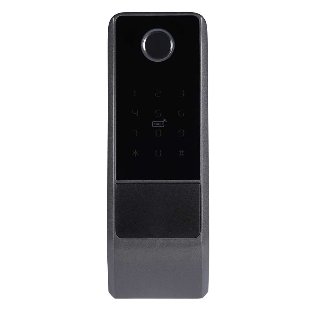 Біометричний автономний електрозамок вуличного виконання з Bluetooth 4.0 і зчитувачем відбитків пальців та карт Mifare 13.56 МГц; відімкнення за допомогою: відбитку пальця, коду, картки, застосунку, ключа; кількість користувачів за відбитком пальця / карткою: 100 / 100; обсяг записів 500; застосунок для роботи TTLock, TTHotel; живлення 4*АА батарейки, робота від батарейок 10-12 місяців / DC 12 В; підходить для дерев’яних та металевих дверей товщиною 25-55 мм; клас захисту IP65; матеріал корпусу алюмінієвий сплав; розміри 168 / 60 / 34 мм
