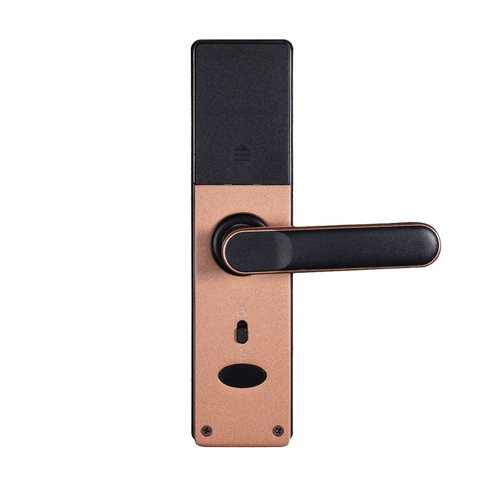 Біометричний автономний електрозамок з Bluetooth і зчитувачем відбитків пальців та карт Mifare 13.56 МГц; відімкнення за допомогою: відбитку пальця, коду, картки, застосунку, ключа; застосунок для роботи TTLock та TTHotel; кількість користувачів за відбитком пальця / карткою / паролем: 100 / 100 / 200; живлення 4*АА літієві батарейки, робота від батарейок 10-12 місяців; інтерфейс microUSB для заряджання; підходить для дверей товщиною 35-55 мм; 2 механічні ключі; матеріал корпусу алюмінієвий сплав; розміри 250 / 64 / 24 мм, серцевина 22-160 5050
