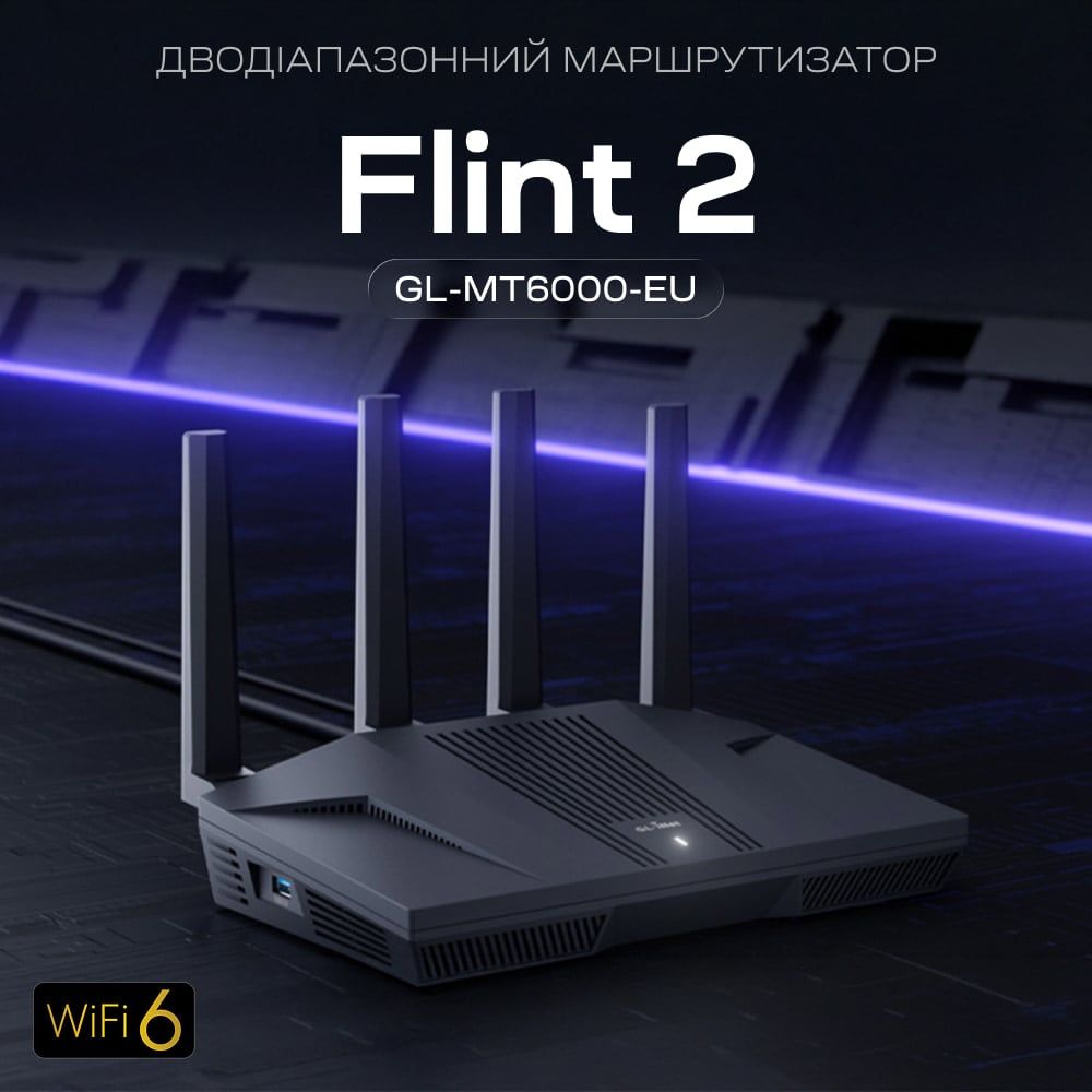 WiFi 6 маршрутизатор GL.iNet Flint 2 (GL-MT6000-EU) 2.5G дводіапазонний