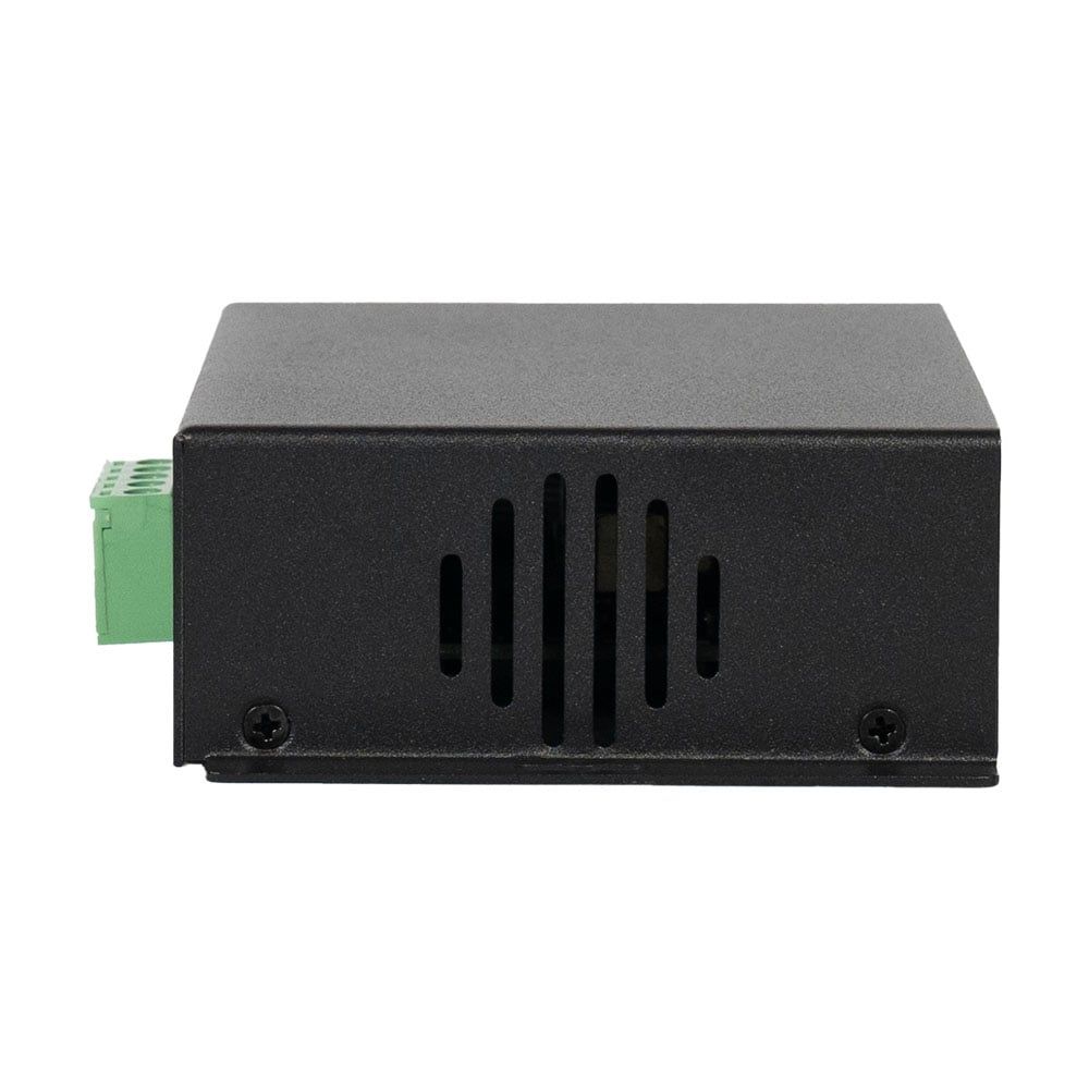 PoE-сплітер; стандарт PoE IEEE802.3bt; потужність PoE 90 Вт; швидкість передачі 10/100/1000 Мбіт/с; вихідна напруга 12 В; вихідний струм 7 А; LED-підсвічування; робоча температура від -40°C до +75°C; клас захисту: IP30; розміри 128 / 90 / 34 мм; вага 0.5 кг