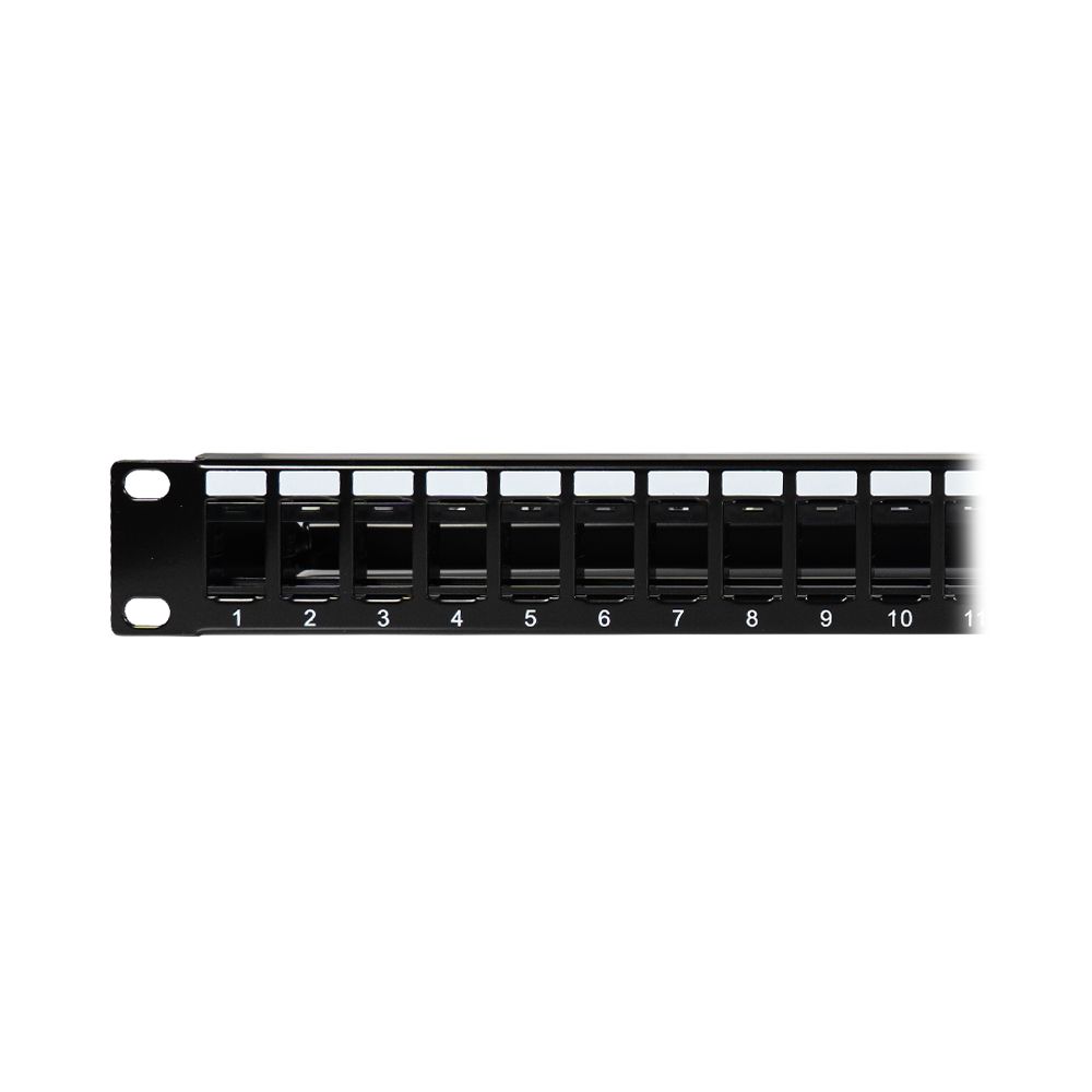 Патч-панель мережева для модулів Keystone на 24 порти, для встановлення у стійки/шафи 19 дюймів; висота 1U; кабель UTP (неекранована вита пара); задній організатор кабелю