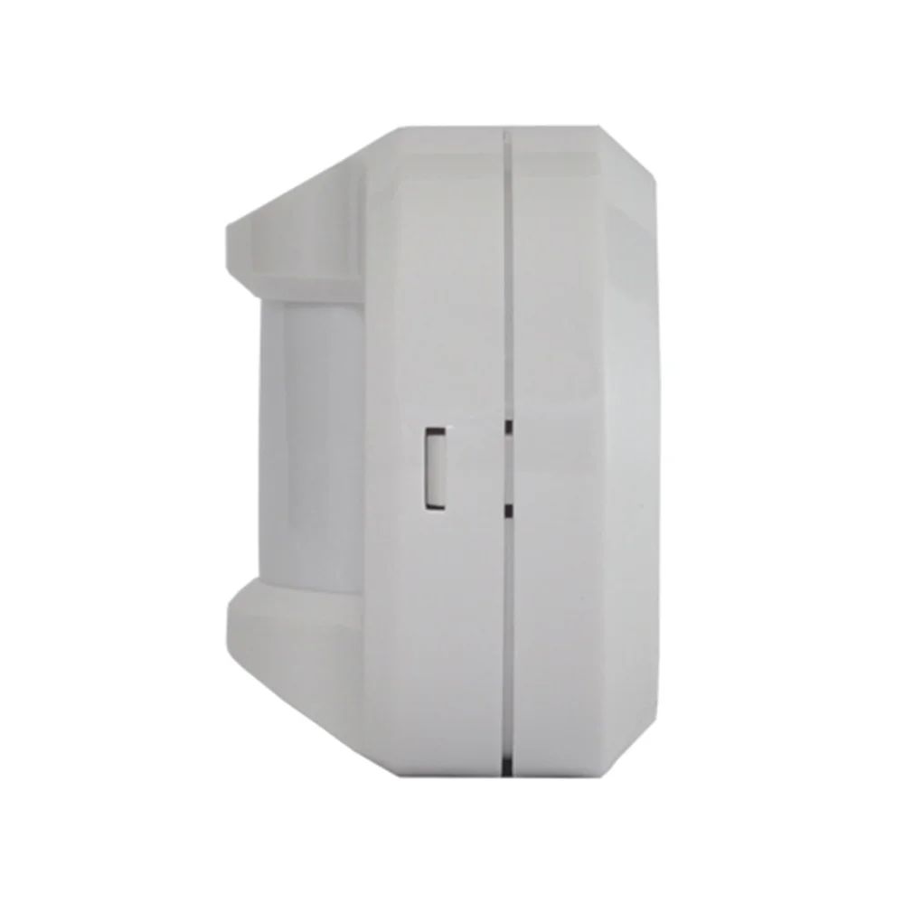 Внутрішній ІЧ-датчик руху; зона виявлення 8 метрів; подвійний піроелектричний інфрачервоний сенсор типу «штора»; живлення 12 В; cтрум споживання 18 mA; робоча температура -10 °C ~ +50 °C; розміри 88 / 50 / 31 мм