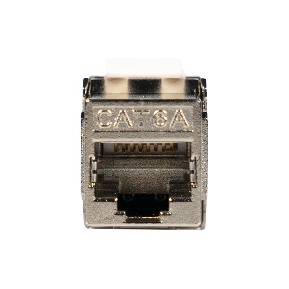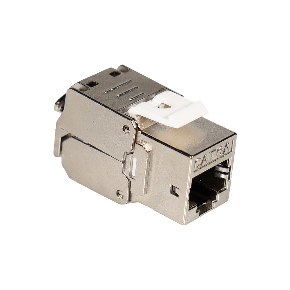 Модуль Keystone для з’єднання з витою парою або патч-кордами з конекторами RJ45 на кінцях, складова частина модульної патч-панелі; категорія CAT6/CAT6A; екранування STP – екранований; кабель у модуль встановлюється без інструментів; кут закладання кабелю 180 градусів