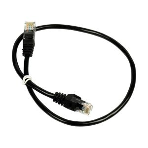 Патч-корд мережевий довжиною 0.5 м; неекранована вита пара UTP CAT5E; матеріал провідника біметал ССA – алюмінієвий сплав покритий міддю, 7*16 мм, 26AWG; 2 конектори RJ45; оболонка ПВХ чорного кольору