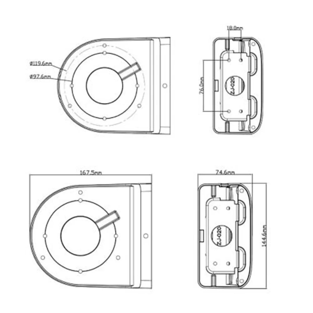 Кронштейн для купольних камер, розміри: 167.5×144.6×74.6 мм