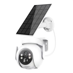 3Mp автономна поворотна IP-відеокамера з підтримкою 4G, з сонячною панеллю та вбудованими акумуляторами 7800 мАг; матриця 1/2.8″ CMOS; роздільна здатність 3Mp (2304*1296); LED-підсвічування до 15 м, повнокольоровий нічний режим; відеокомпресія H.265/H.264; фіксований об’єктив f=4 мм; кути повороту/нахилу 270°/90°; керування через мобільний застосунок CareCamPro; стандарти бездротового зв’язку LTE, WCDMA, GSM; вбудований детектор руху із виявленням руху до 12 м; живлення: DC 5 В (роз'єм живлення USB Type-C), сонячна панель потужністю 7.5 Вт та 3 акумуляторні батареї типу 18650 ємністю 7800 мАг; вбудовані мікрофон і динамік; запис на microSD карту до 128 Гб або у хмарний сервіс; ступінь захисту IP65; робоча температура -10°C~+60°C; розміри 303 / 210 / 140 мм