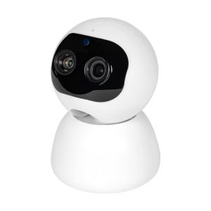 2Mp внутрішня поворотна IP-відеокамера з підтримкою Wi-Fi (2.4 ГГц) з подвійним об’єктивом; роздільна здатність запису 1080P; відеокодек H.264; підтримка подвійного об’єктива (3.6 мм + 12 мм); ІЧ-підсвічування 12 м; кут повороту 0-340°, кут нахилу 0-72°; вбудований мікрофон та розмовний динамік; двостороннє аудіо високої якості; функція автотрекінгу; віддалений моніторинг на смартфонах iOS та Android (застосунок CareCamPro); вбудований PIR-датчик із виявленням руху до 10 м; запис за детекцією руху на карту micro SD (до 128 Гб); живлення 5В/0.7А, блок живлення у комплекті DC 5В/1.5 A; пластиковий корпус; клас захисту IP55; розміри 82 / 82 / 121 мм, вага 200 г