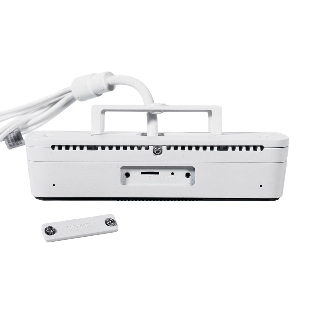 4Mp IP-відеокамера з WiFi з подвійним об’єктивом, з відеоаналітикою – підрахунок людей; матриця 1/3″ CMOS; кут огляду 103° горизонтальний, 70° вертикальний; ІЧ-підсвічування до 10 м; відеокомпресія H.265+/H.265/H.264+/H.264; роздільна здатність 4Mp (2560*1440); 0.008 Люкс @F2.1, 0 Люкс з ІЧ; об’єктив f=2.1 мм; мережа: RJ45 100M; ONVIF, SDK; живлення DC12V/PoE; 2 вбудовані мікрофони, динамік, 1 аудіовхід / 1 аудіовихід; 1 тривожний вхід / 1 вихід; RS485; 3 відеопотоки; запис на microSD карту (до 256 Гб); ступінь захисту IP66; габаритні розміри: 180 / 65 / 43.4 мм; вага 0.563 кг