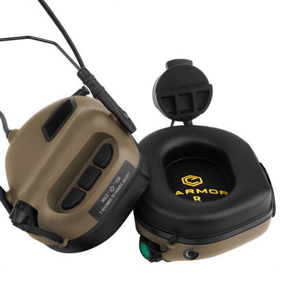 Активні захисні навушники з адаптерами для кріплення на рельси шолому ARC; рівень шумоподавлення 22 дБ (NRR); час реакції: 1 мілісекунда; кнопки увімкнення/вимкнення та гучності; автоматичне вимкнення після 4 годин бездіяльності; клас захисту IP67; працює від 2 батарейок AAA – батарейки слід придбати окремо; в комплекті аудіокабель 3.5 мм і жорсткий чохол для транспортування; вага 350 г