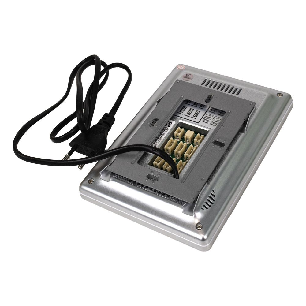 Стан обладнання: знято з вітрини, подряпини. Кольоровий домофон з TFT екраном 4 дюйми і сенсорними кнопками керування, підключення 2 панелей виклику, 2 відеокамер, 2 датчиків тривоги і 1 додаткового монітора (телевізора). Розмова по гучному зв'язку, є інтерком на 3 відеодомофона. З'єднання з панеллю виклику 4-дротове. Слот microSD до 32 Гб, живлення 100-240V, споживання 600mA, в режимі очікування 250mA. Корпус чорного кольору.