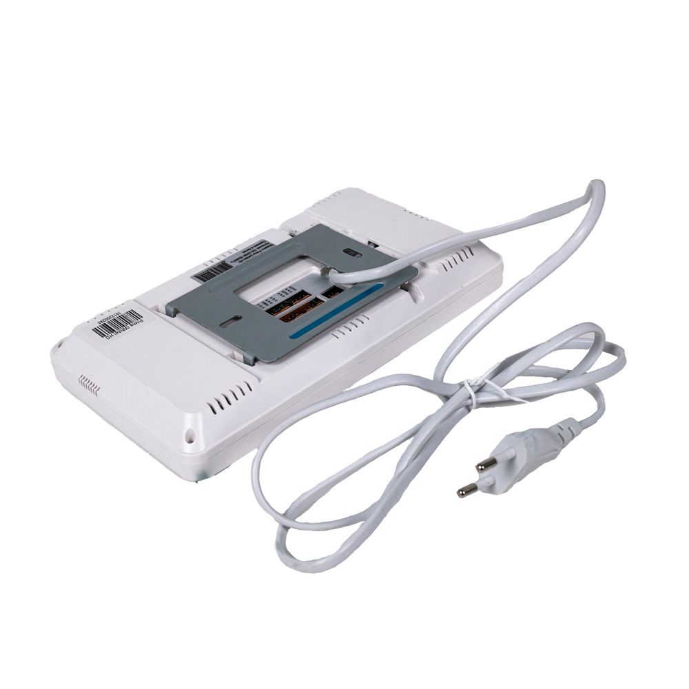 Стан обладнання: знято з вітрини, подряпини. Кольоровий монітор з TFT екраном 7 дюймів, підключення 2 панелей викликів і 2 відеокамер формату AHD / CVI / TVI 1080p / 720p або CVBS. Розмова по гучномовному зв'язку, сповіщення. З'єднання з панелью виклику 4 провідне. Сенсорні кнопки керування. Слот MicroSD до 128ГБ. Живлення 100-240V, споживання 9W, у режимі очікування 1W. Корпус білого кольору. Розміри 210x116x25мм.
