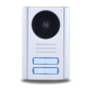 Кольорова накладна відеопанель сірого кольору на 2 абоненти. Роздільна здатність камери 800ТВЛ. Кут огляду 110°. 4-х дротове підключення до домофона або 5-ти дротове під час використання функції відчинення воріт. Робоча температура -30..+60°С. Живлення від монітора DC10-15V, споживання не більше 3W. Реле замка DC5-24V і струмом 4A. Вихід керування воротами до 30V/5mA. Клас захисту IP54. Розмір 129*87*25мм. Повна комплектація. Знято з вітрини