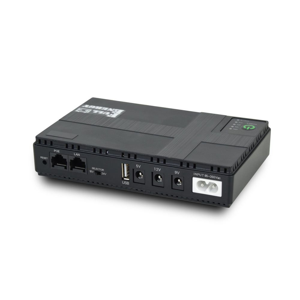 ДБЖ Full Energy BBGP-18W Mini UPS підтримує вхідну напругу 85-265В AC і максимальну потужність 18 Вт. Оснащений виходами USB 5В/2А, DC 5В/2А, DC 9В/1А, DC 12В/1А, POE 15В/0,6А і POE 24В/0,6А. Акумулятор 10400 мА·год (2600 мА·год х 4шт) забезпечує тривалу автономність. Розміри пристрою - 160x105x33 мм, вага - 400 г. Робоча температура від 0°C до +45°C, вологість 10% ~ 90%. Вбудований захист від перезаряду, перерозряду та короткого замикання забезпечує безпечну експлуатацію.