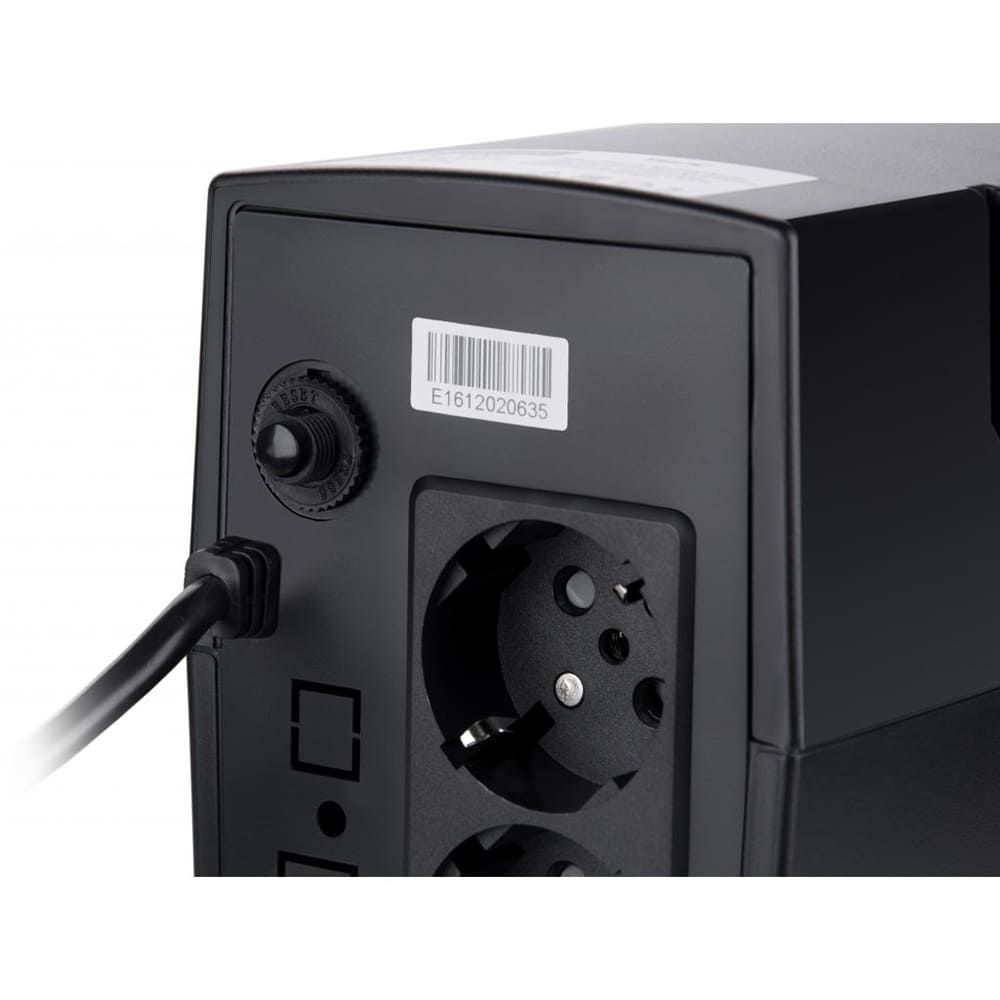 ДБЖ лінійно-інтерактивне з апроксимованою синусоїдою. Потужність 800ВА / 480 Вт. Вхідна напруга 220 В ± 25%. Вбудована АКБ: 12В / 7Агод. 2 євророзетки. Пластиковий корпус. Розміри 100 x 280 x 140 мм
