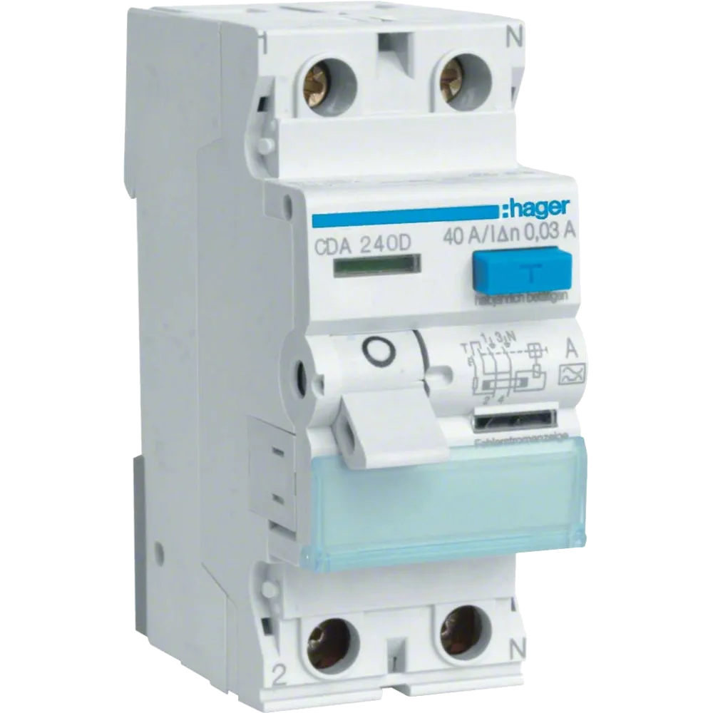 Hager CDA240D Диференціальне реле 2P, 6kA, 40A, 30mA, A