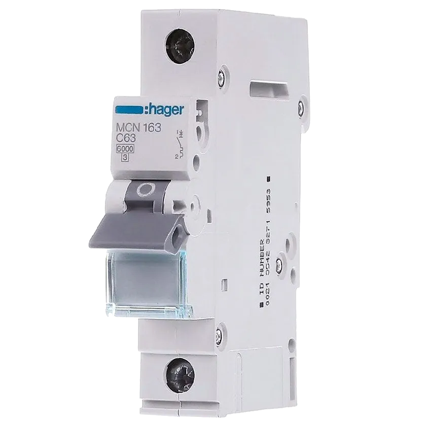 Hager MCN163 Автоматичний вимикач 1P 6kA C-63A 1M