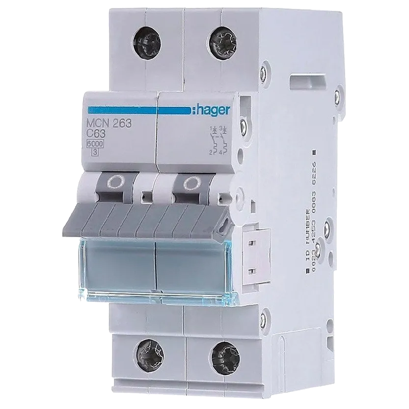 Hager MCN263 Автоматичний вимикач 2P 6kA C-63A 2M