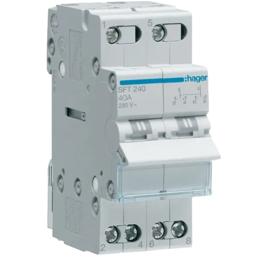 Hager SFT240 Перемикач I-0-II з загальним виходом зверху, 2-пол., 40А/230В