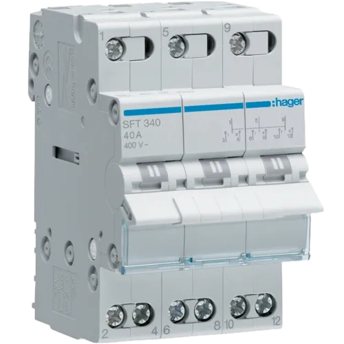 Hager SFT340 Перемикач I-0-II з загальним виходом зверху, 3-пол., 40А/400В