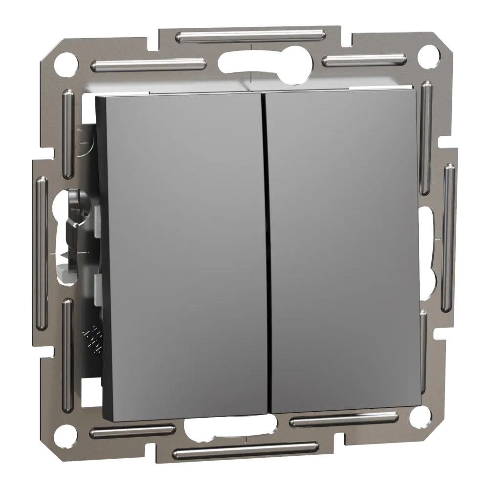Schneider Electric EPH0300171 Asfora Вимикач 2-клавішний антрацит, пластик, без підсвічування та індикації, для врізного монтажу