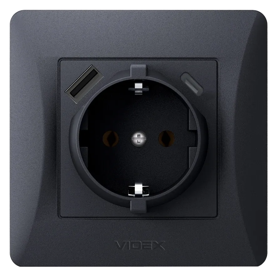 VIDEX BINERA Розетка одинарна із заземленням з USB+USB-C чорний графіт